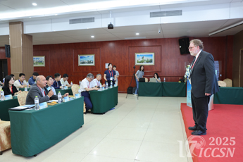 7月26日上午,大会开幕,开幕式上,中国海洋大学信息科学与工程学部副部长郭忠文教授发表欢迎致辞。他代表主办方对来自世界各地的与会嘉宾表示热烈欢迎,并简要介绍了中国海洋大学在通信领域取得的重要研究成果,并预祝大会圆满举办。随后,大会主席、法国巴黎第十三大学Jalel Ben-Othman 教授致辞。他指出,ICCSN作为通信软件与网络领域的重要国际会议,在推动全球技术进步与交流合作方面具有重要意义,并期待与会者在思想的交流与碰撞中激发创新灵感。开幕式由中国海洋大学电子工程学院副院长吕婷婷副教授主持。